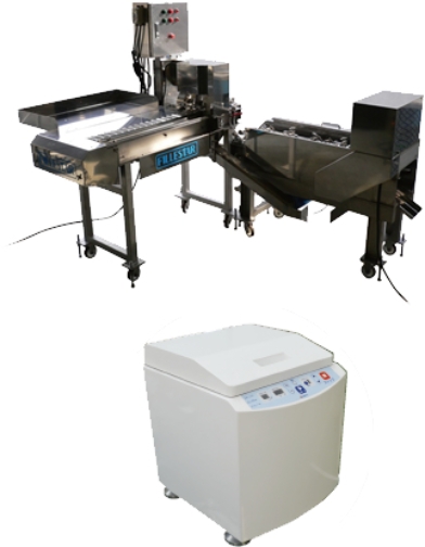 2007年にフィレスターという魚を3枚に下す機械のOEM製作を頼まれ、今まで試作用の部品製作しかしたことのない工場で機械を作ることになりました。当時使われていた機械を全て分解し部品の形から設計までいろんな分野が初めてでした。いろいろと試行錯誤しながら機機械が完成。これが、淀川製作所初めてのOEM製品の製造となりました。 続いて2008年には「自転しながら公転するダブルミキサー技術」を利用した医療系の機械開発にも成功。その他にも多数のOEM製品を製作しました。